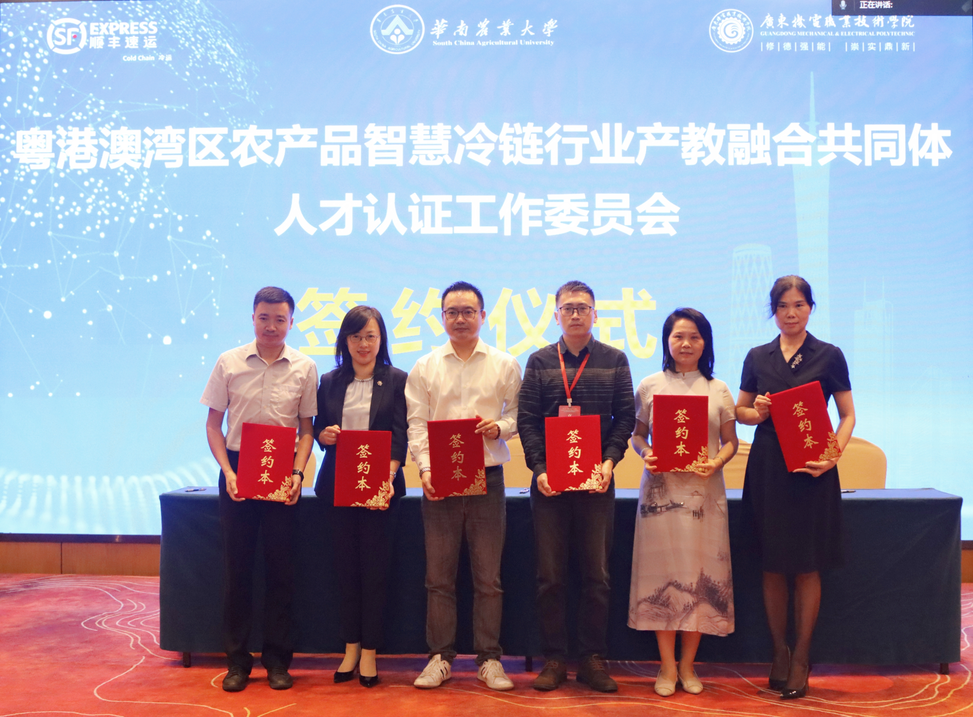 10月26日,粤港澳湾区农产品智慧冷链行业产教融合共同体在广州成立,会上玉湖冷链与广东省物流行业协会、广州顺丰冷运供应链有限公司、华南农业大学(国家「双一流」建设高校)、广东机电职业技术学院(国家「双高」计划建设单位、教育部首批示范性职业教育集团培育单位)以及广东开放大学学分银行管理中心六方签订《粤港澳湾区农产品智慧冷链行业产教融合共同体人才认证工作委员会合作协议书》,推动粤港澳资历框架对接,打通冷链人才成长「立交桥」,助力高质量人才培养、职业培训和人才互认。