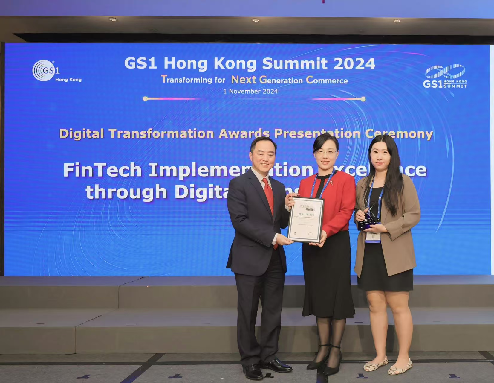 11月1日,GS1 HK高峰会在香港会议展览中心圆满举办,吸引了香港及亚太地区约650名跨行业代表参加。会上,玉湖冷链自主开发的《云上玉湖冻品供应链金融监管解决方案》荣获“数字转型奖:金融科技实践卓越奖(Digital Transformation Awards:Fintech Implementation Excellence)”。香港玉湖集团执行董事黄铮洪作为代表出席并领奖。